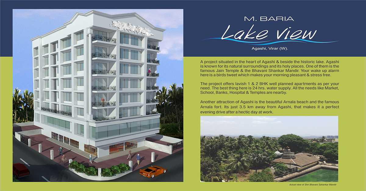 A project situated in the heart of Agashi & beside the historic lake, Agashi is known for its natural surroundings and its holy places. One of them is the famous Jain Temple & The Bhavani Shankar Mandir. Your wake up alarm here is a birds tweet which makes your morning pleasant & stress free.