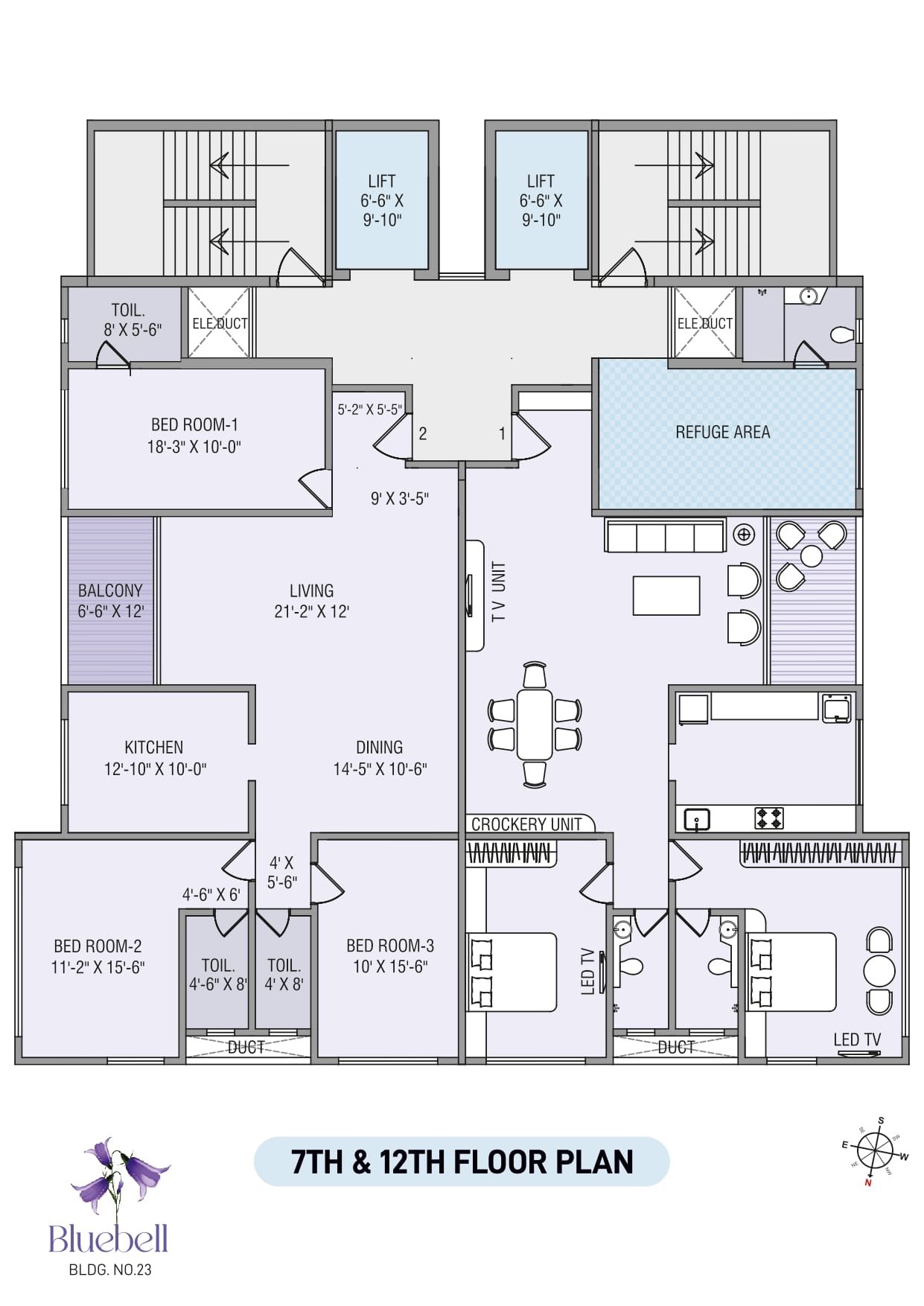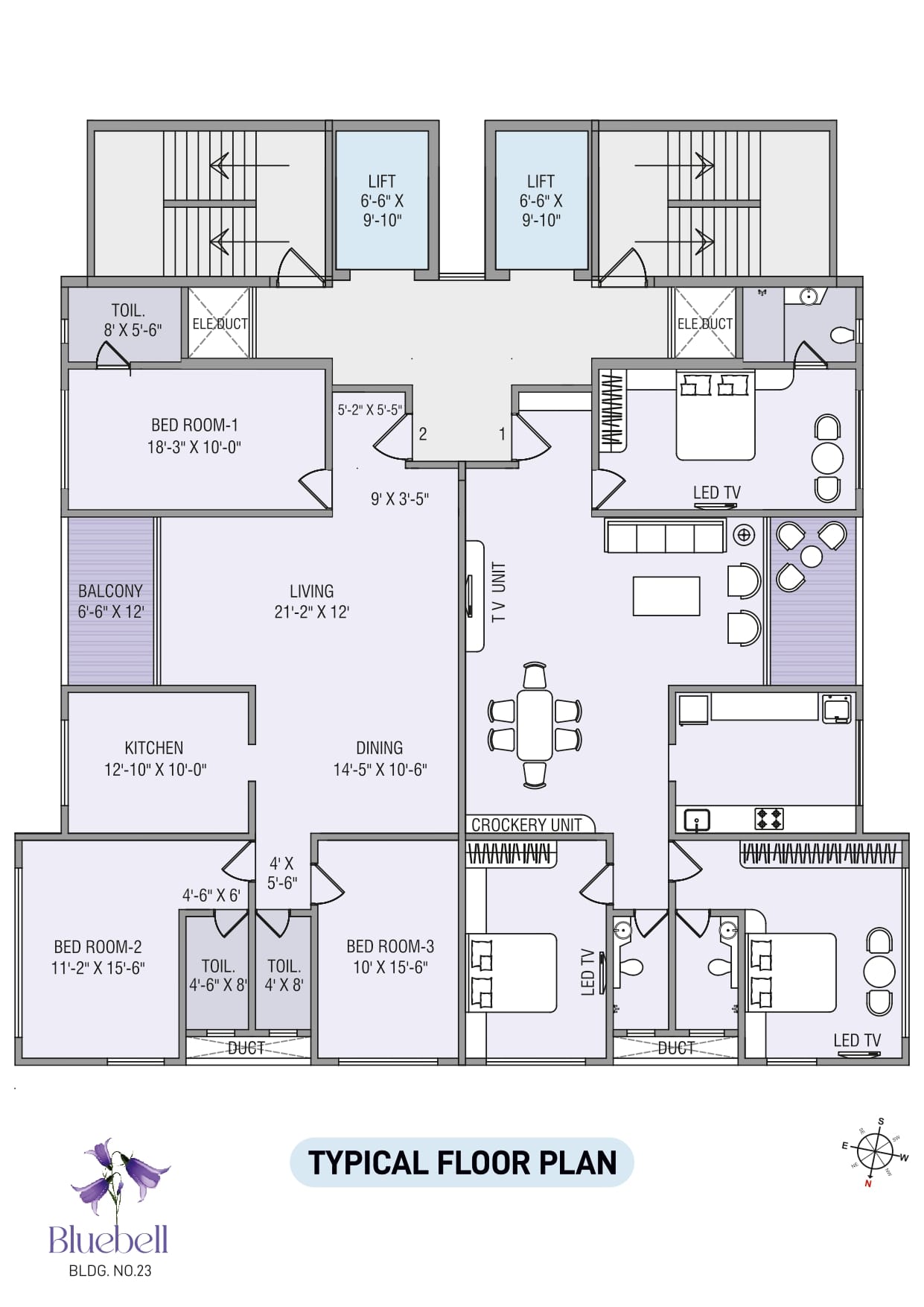 1 | Bluebell | 3 BHK | On Requet | Price on Request |